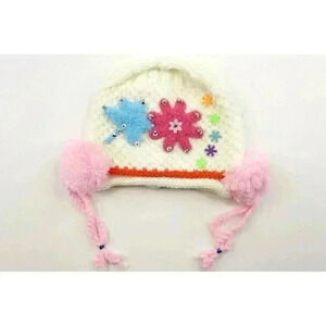 HAND knitted girl hat with knitted applique with beads for 3-6 year old. NEW. Shipped with USPS First Class.