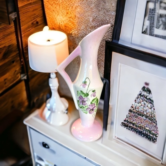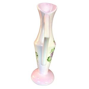 HAND painted vintage vase, violets motif, artisan made, excellent condition
