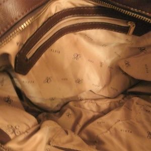 VIETA DUAL CHOCOLATE STRAP FAUX SNAKESKIN STUDDED HOBO. FLAWLESS Gold stud and grommet detail. Measures approximately "14x"16" and 6" depth. Handle drop is approximately 9". Side front and back pockets with magnetic closure. Interior zip pockets. Top zip. Great bag!