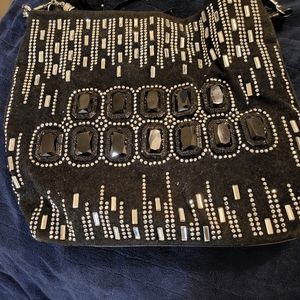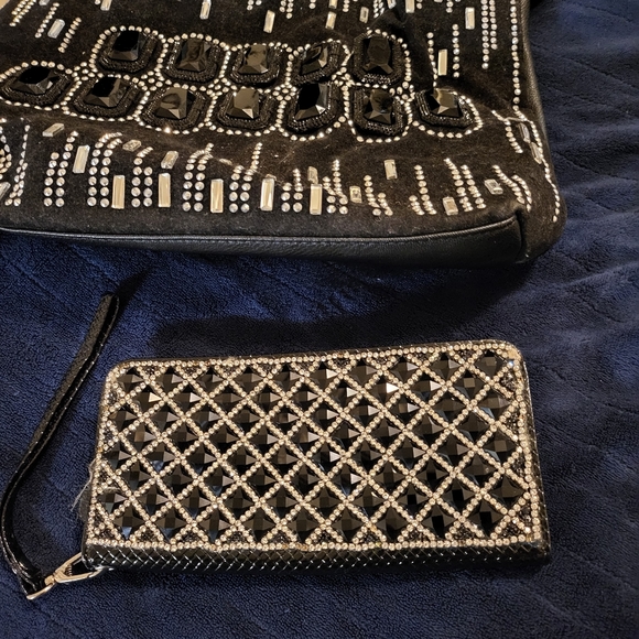 Beautiful Black Stone handbag / with Wallet Settings are set in layers. You will make a statement carrying this bag. Inside has silk - like