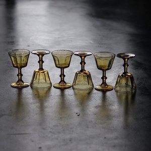 HAND-BLOWN ANTIQUE YELLOW DESSERT GLASSES SET