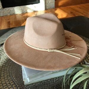 HAND-BURNED PEACH CREAM WIDE-BRIM RANCHER HAT