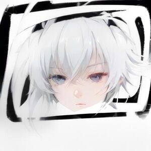 Beautiful anime character art print with striking white hair and captivating blue eyes. Perfect for fans of anime art.