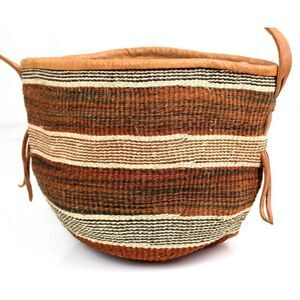 HANDCRAFTED BEIGE BROWN JUTE BROWN LEATHER HANDLES BASKET SHOULDER BAG X-BODY