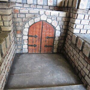 DOORWAY 3" tall x 3 1/2" wide x 3 1/2" deep ; doors 2 1/2" tall x 2" (not rock arch)