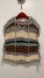 FEATURES: Pull-over style, crochet fabrication, striped pattern, hoodie, oversized V neckline with tie closure, side fringe trim