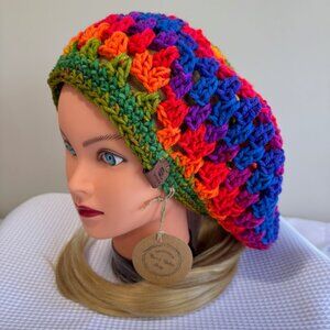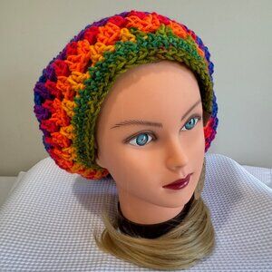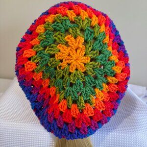 HANDCRAFTED Crochet Rainbow Mandala Slouch Beanie Beret Hat