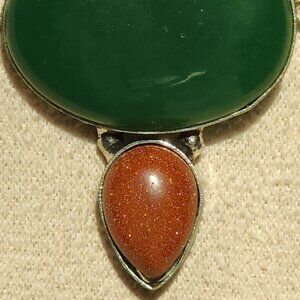 HANDCRAFTED GREEN AVENTURINE SANDSTONE RED JASPER 18" STERLING SILVER CHAIN