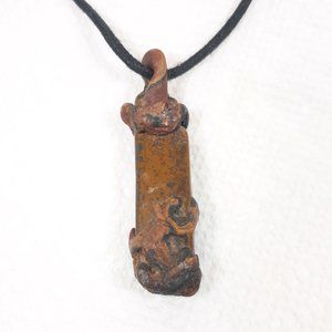 I DESIGNED AND HANDCRAFTED THIS ONE OF A KIND UNISEX JASPER GEMSTONE NECKLACE WITH A POLYMER SETTING ON A 20 INCH CORD NECKLACE. THE JASPER GEMSTONE SETTING IS 1/2" WIDE X 2 1/2" LONG. JASPER IS A HEALING GEMSTONE THAT SUPPORTS THROUGH TIMES OF STRESS, BRINGS TRANQUILITY AND WHOLENESS. IT PROVIDES PROTECTION AND ABSORBS NEGATIVE ENERGY.