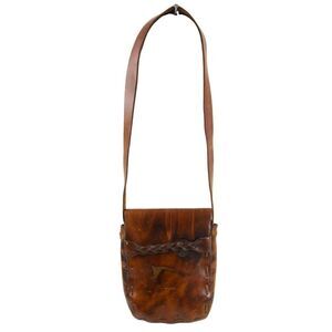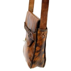 HANDCRAFTED SADDLE BROWN GENUINE LEATHER FLAP X-BODY SHOULDER BAG HANDBAG PURSE