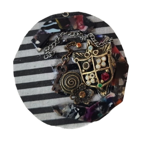 Tortoise Striped Faux Leather upcycled assemblage Steampunk Chains Skeleton Key Embossed