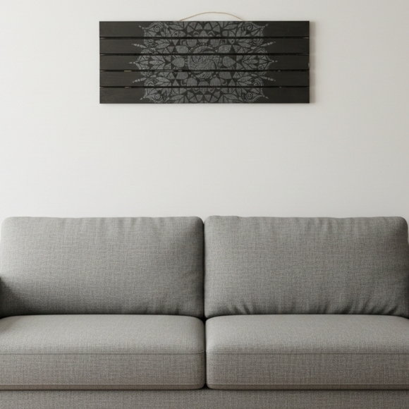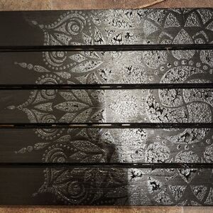 HANDCRAFTED Upcycled Black Wood Panel Board HANDPAINTED Mandala Wall Art Decor