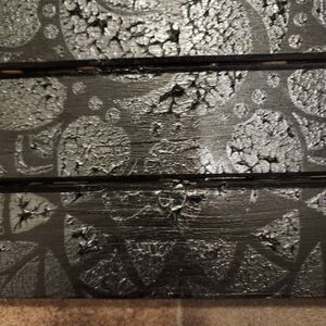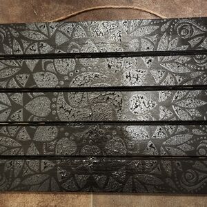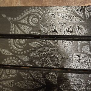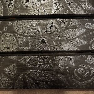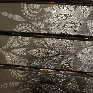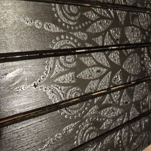 This dark and beautiful Hand Painted Upcycled Wood Panel Board is stunning and romantic in a way. Hand Crafted with Acrylic Paints in Black and Textured Iridescent Graphite (Dark Shimmery Gray / Grey - with shades of a Deep Silver ) colors. Add some dynamic splash to your walls with this Mandala Abstract Painting.