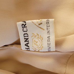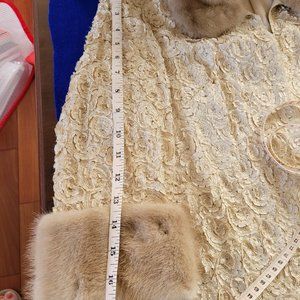 BEAUTIFULLY HANDCRAFTED VINTAGE SHORT GOLD JACKET FULLY LINED WITH 3/4 SLEEVES. GENUINE MINK COLLAR AND TRIM ON SLEEVES. VERY NICE USED CONDITION. VERY RARE. SMOKE FREE HOME. Chest measures approx 20" front & back. Sleeves are 17". Jacket length 21". No size tag, so estimating size to be S.