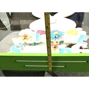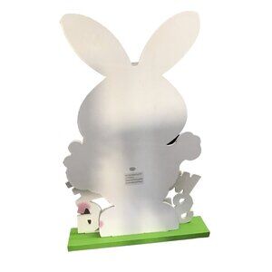 HANDCRAFTED WELCOME SPRING RABBIT /EASTER DEORATING WOODEN SHELF SITTER FIGURINE