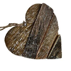 HANDCRAFTED WOODEN CHRISTMAS ORANAMENTS LOVE HEART SET 2 RUSTIC CABINCORE NEW