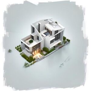 This captivating art piece showcases a minimalist architectural drawing, highlighting a white geometric structure with clean lines and cubic forms. The textured shadows and subtle details bring depth and dimension to the illustration, making it a sophisticated addition to any art collection.
