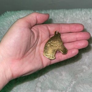 HANDCRAFTED by a designer in Ireland bought on Etsy . Necklace pendant NWOT . Horse face sculpture size of my palm gold plated . Very well made designer name is on the back of the design