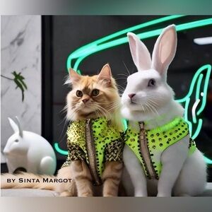 Very contemporary high tech cute kitty and bunny print for a fashion house of kids room and more