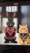 HANDCRAFTED digital art by me bunny and cat image in interior design space print this will be a high quality color print with lamination . This will only be printed once purchased due to cost and to not waste a high quality print . Please review views of the clients who purchased the prints and their experience . Various sizes can be discussed costs will vary due to size