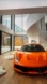 Sleek Ferrari with a bold orange finish. Exudes elegance and speed. In a decor space for your walk and art lovers