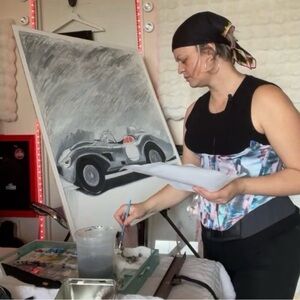HANDCRAFTED digital art print Ferrari in Bold Orange in a home decor space NWT
