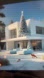 HANDCRAFTED digital interior decor by me color print NWT blue/white architecture
