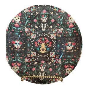Handmade dia da Los muertos fabric backed plate