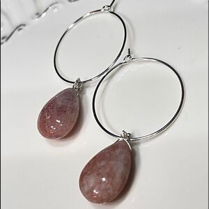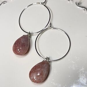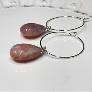 HANDCRAFTED dainty silver-tone hoops & sparkly sunstone earrings