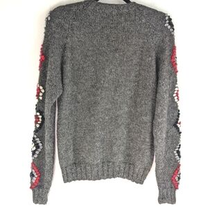 HANDKNIT Grey Sweater with Diamond Pattern Sleeves S/M