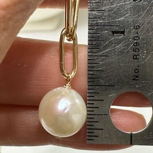 HANDMADE 10mm White Cultured Pearl 14K Paperclip Necklace 19 Inches - Adjustable
