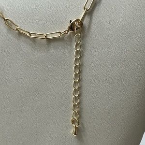 The necklace is 14K yellow gold plated over a strong alloy and it is adjustable to any length, up to 19 inches.
