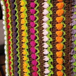 HANDMADE 1970s Rainbow Crochet Baby Lap Receiving Stroller Afghan
