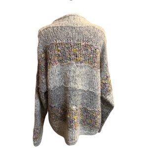 HANDMADE ANGORA WOOL MOHAIR Button Up Knit Cardigan Sweater Women's Gray Floral