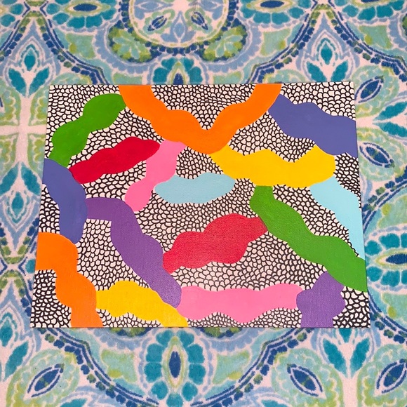 Handmade with love π β€οΈπ§‘ππππ This 11 in by 14 in beauty can easily be hung up using a few command strips(not included with painting). I recommend putting them on opposite corners to stabilize the painting best. π