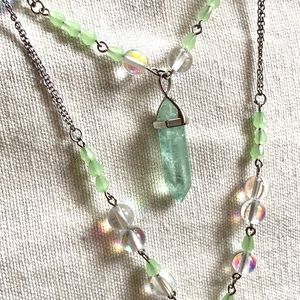 This beautiful Aventurine oil Rosary is a one-of-a-kind piece that brings focus and intention to emotional healing. It’s double-pendant design features both a Green Aventurine point as well as a custom wire wrapped intention jar for use with any herb or essential oil of your liking.⚡️