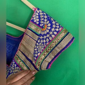 HANDMADE Authentic Embroidered U Neck Blue & Gold Saree Choli Bollywood Small