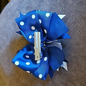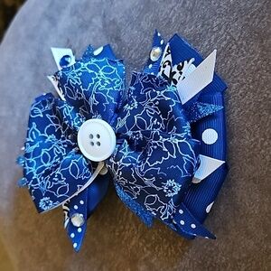 HANDMADE Blue Button Ribbon Coquette Hair Bow Clip