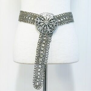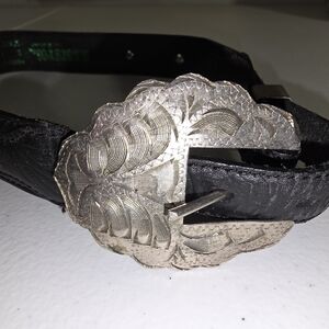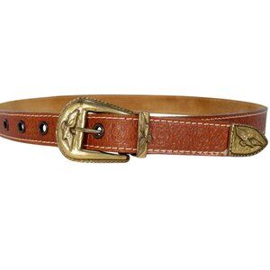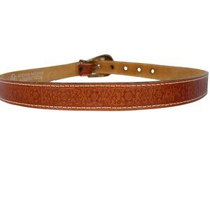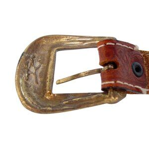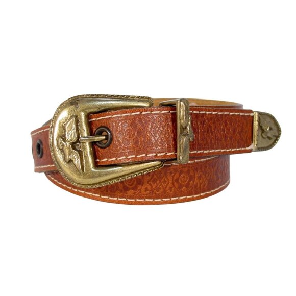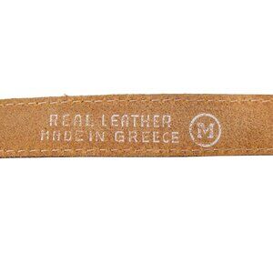 HANDMADE Brass Eagle Buckle Embossed Leather Belt Women's M - Made in GREECE