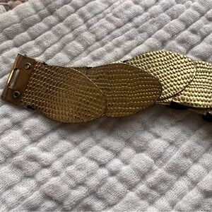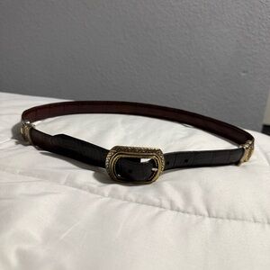 Handmade belt has a fine embossed pattern on the leather strap. Accented with a hand-hammered brass buckle, tip and keeper loops, each piece with a flying eagle. Grommet adjustment holes add longevity to this beautiful piece. Suede lining. Made in Greece.