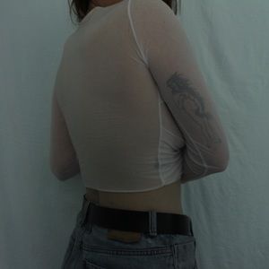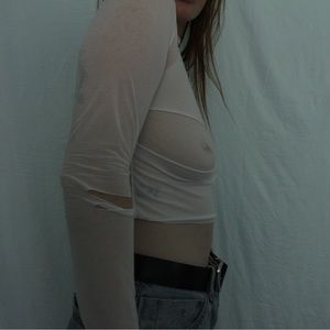 very stretchy thin fabric , in great condition barley worn, bought from a depop seller . fits like s-m