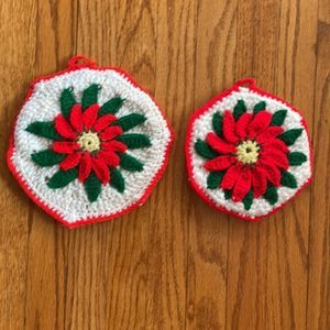 HANDMADE Christmas Trivets / holiday decor crochet VINTAGE (set of 2)