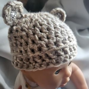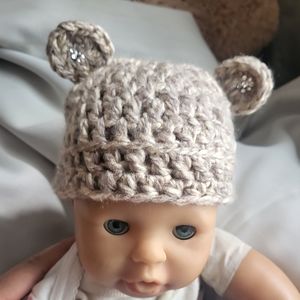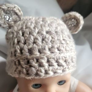 Adorable Handmade crochet Baby Beanie with crystal ears. Size 6-12m. See my wall for other sizes and items. Have a blessed day.