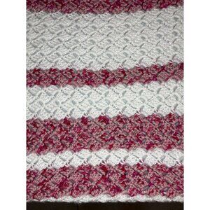 HANDMADE Crochet Baby Blanket White Pinks 100% Acrylic Caron Simply Soft Yarn