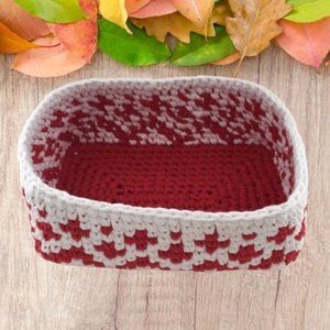 HANDMADE Crochet basket / storage organizer / decor rectangular red and white.