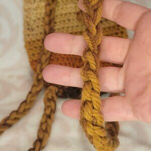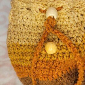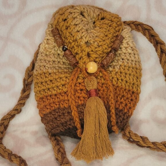 Handmade by me, crocheted mini backpack purse with beaded accents and durable braided straps.