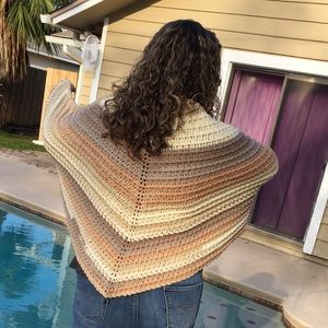 HANDMADE Crocheted Shawl. Made by me but designed by Jeanne Steinhilber. Colors neutral and will coordinate with anything! And it's really warm! 80% Acrylic/20% Wool.