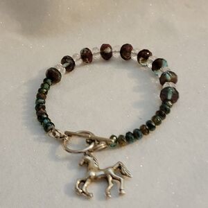 HANDMADE Czech Glass Bangle Horse Charm Toggle Rodeo Bracelet