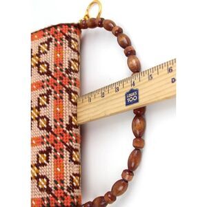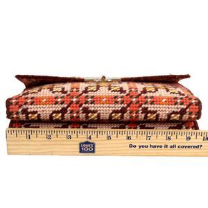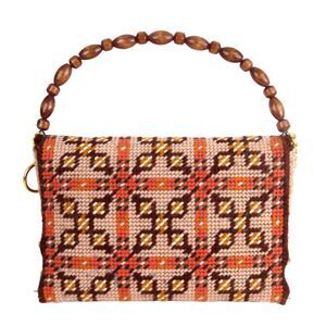 HANDMADE EMBROIDERED MULTICOLOR TAPESTRY WOOD HANDLE FLAP POCKETBOOK HANDBAG PURSE