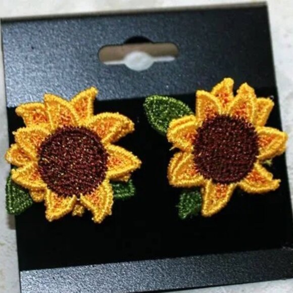 HANDMADE Earrings Sunflowers Embroidered Lace Pierced Pair Flowers Yellow